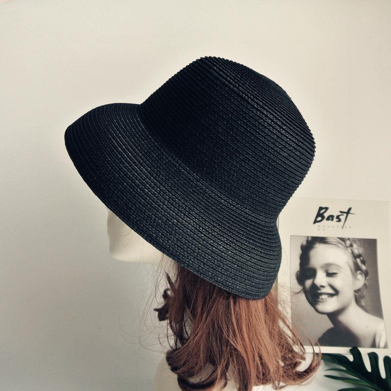 French Retro Elegant Hepburn Black Straw Hat Women'S Summer Sunshade Sun Protection Versatile Top Hat Bell Fisherman Basin Hat