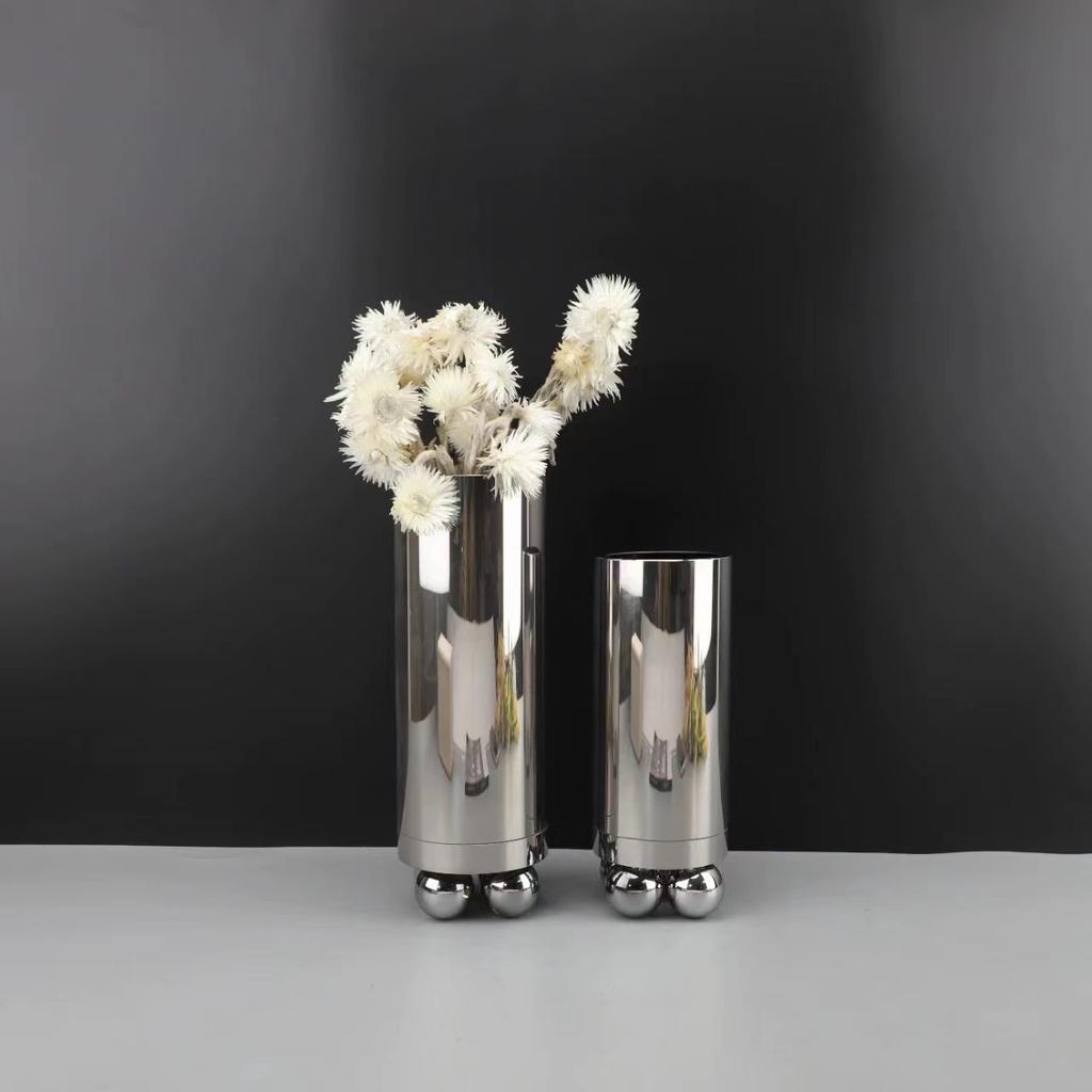 Glass Vase Silver Geometric Ball Abstract Cylinder Flower Vase Floral Arrangement Accessories Terrarium Home Decoration