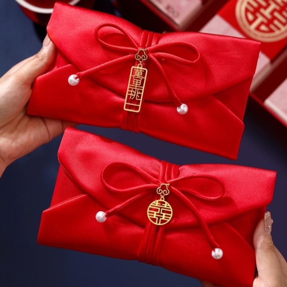Chinese Style Brocade Red Envelope HongBao Bronzing Wedding Money Envelope Blessing Traditional New Year Money Bag