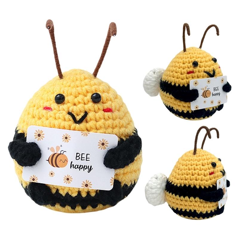 Cute Mini Positive Crochet Bee Hand-woven Animal Doll Thank You Gift for Birthday Teachers Graduation Car Interior Accessories