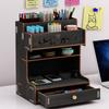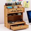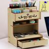 Wooden Desk Storage Shelf Multi-function Drawer Desk Organizer Office Desktop Display Shelf Pen Holder Stationery Storage Box