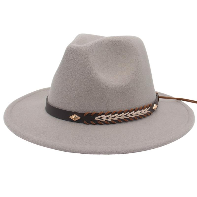 Cross-Border New Woolen Jazz Hat With Felt Hat Large Brim Fashion Top Hat Couple British Gentleman And Lady Hat