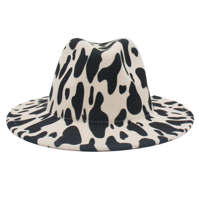 New Six-Color Cow Pattern Top Hat, Men'S And Women'S Color Matching Woolen Big Eave Hat, Jazz Hat, Stage Felt Hat