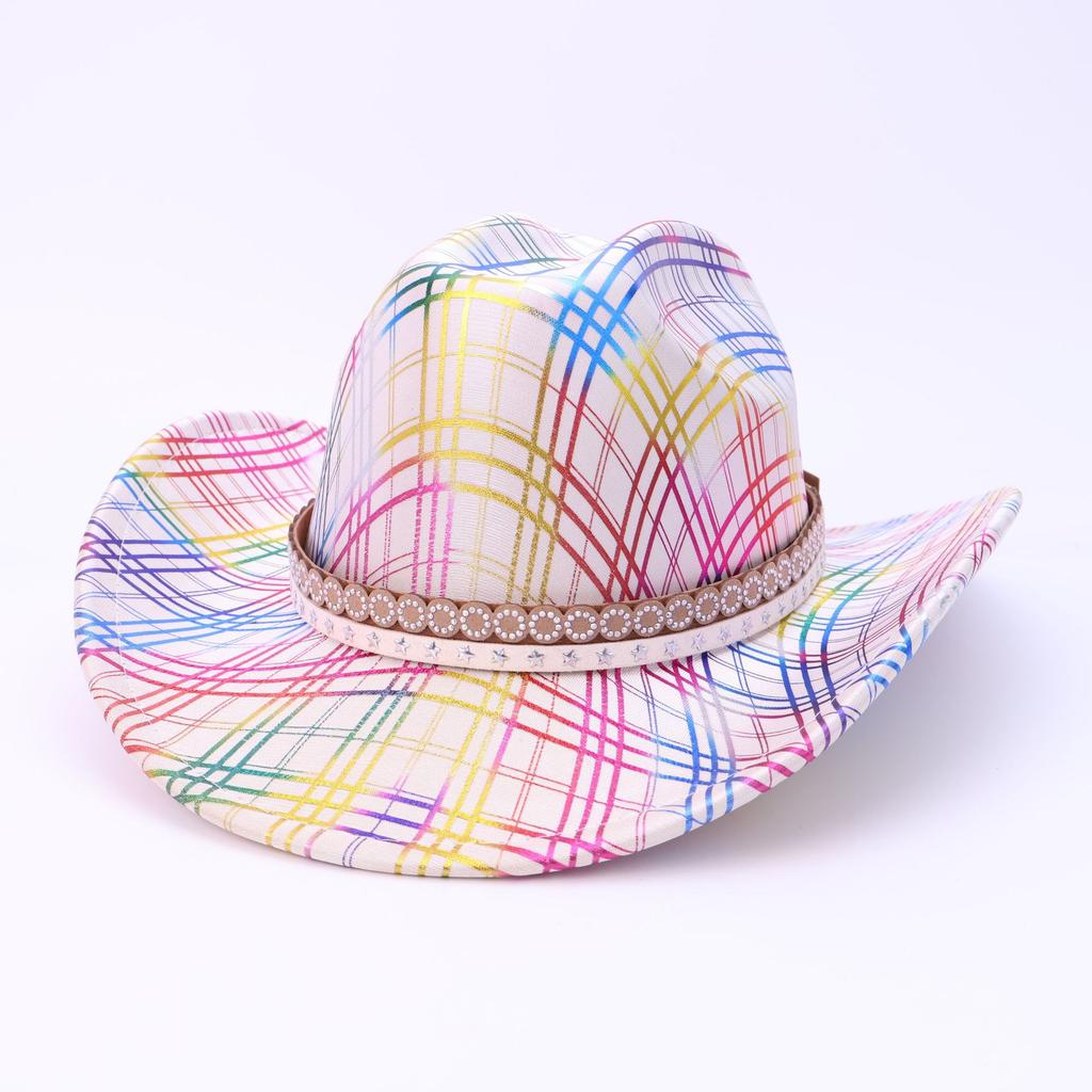 Western Cowboy Hat European And American Colorful Sequined Striped Plaid Jazz Hat Men'S And Women'S Stage Top Hat