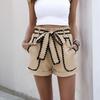 Summer New Contrasting Color Patchwork Belt Tie Casual and Versatile Shorts for Women