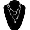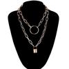 Personalized Retro Cold Wind Chain Women's Versatile Necklace, Multi-layer Metal Ring Lock Pendant Necklace