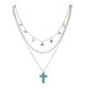 Personalized Turquoise Cross Star Gravel Pearl Multi-layer Metal Necklace