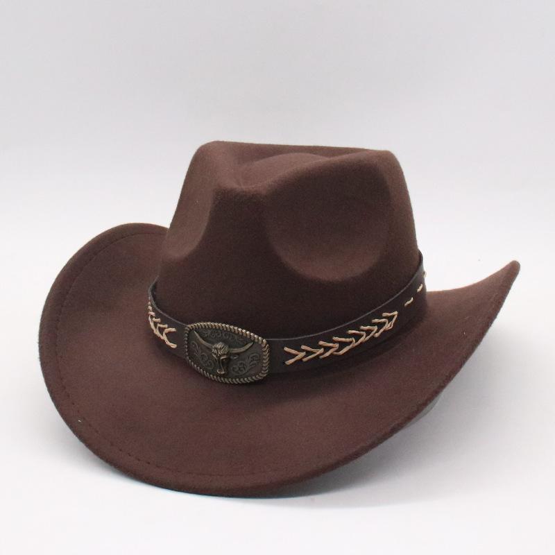 Bull Head Accessories, Western Woolen Outdoor Sunshade Knight Hat, Cowboy Hat, Men'S And Women'S Curved-Brimmed Jazz Hat