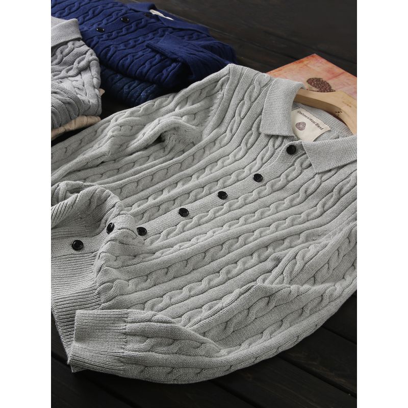 Classic Old Money Style Soft Fleece/Cotton Foreign Trade Tail Goods Men's Autumn and Winter Knit Cardigan Lapel Sweater Outerwear
