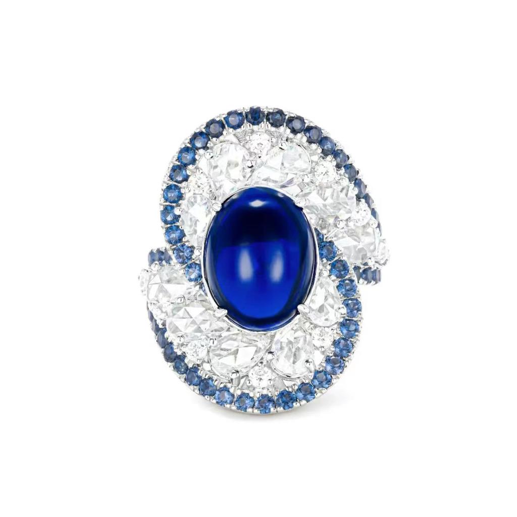 Taste Of The Sea Blue Swirl Ring Haute Couture Jewelry Design Blue Spinel Sri Lankan Blue Diamond Colored Treasure Girl