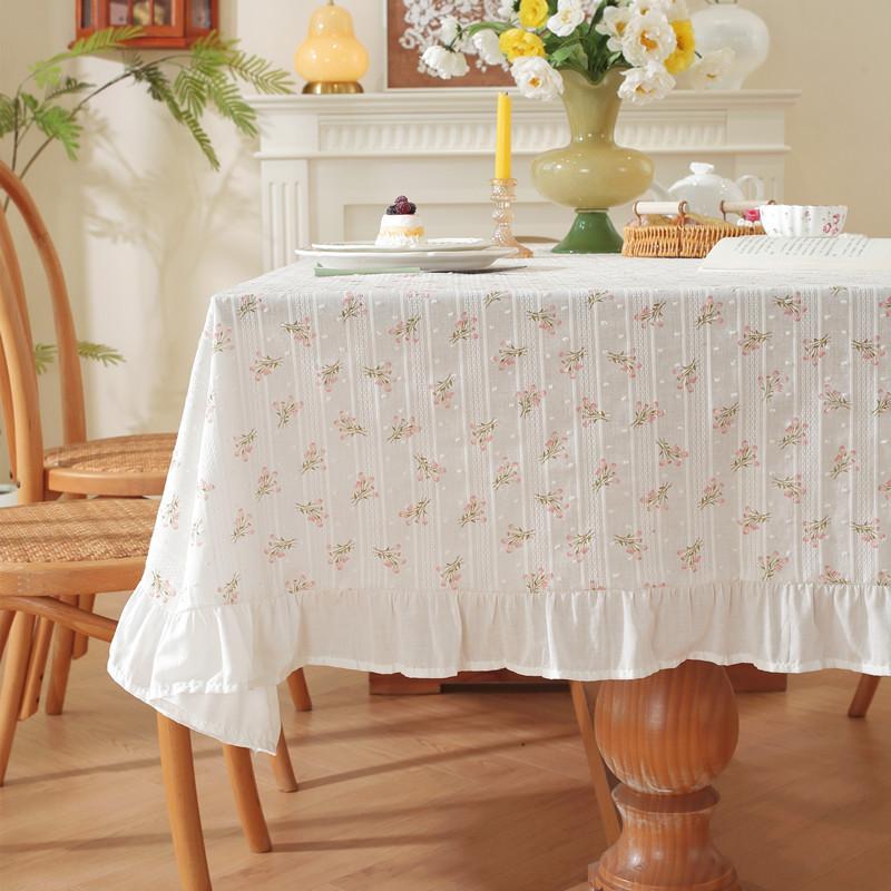 Cotton Printed Small Fresh Green Plants Spring Flowers Leaves Lotus Leaves Edge Fungus Edge Coffee Table Tablecloth Dining Table Cloth