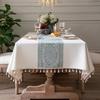 Christmas Light Luxury Ins Style Amazon Table Cloth Decoration Cotton And Linen Simple Solid Color Striped Tassel