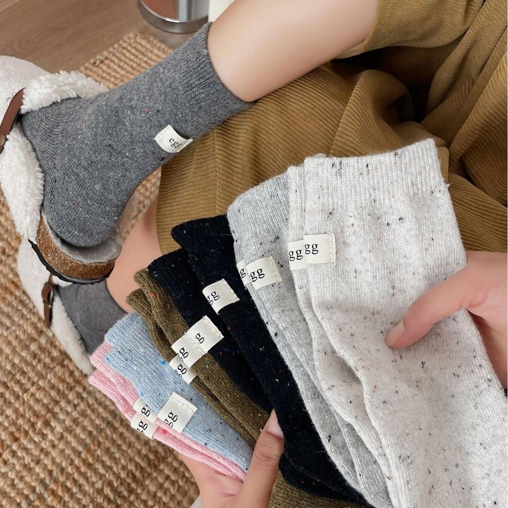 Korean Egg Cloth Label Wool Socks Children'S Thickened Warm Point Yarn Thick Thread Medium Tube Socks Dongdaemun Stacking Socks