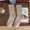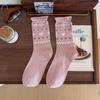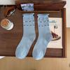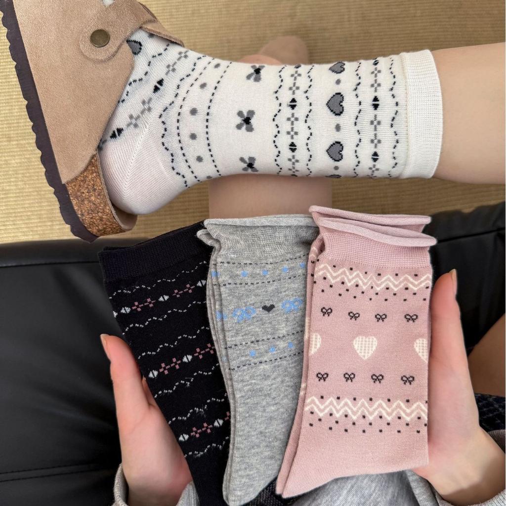 White Mid-Leg Socks, Style Bow Love Rolled Hemmed Cotton Socks, Korean Collegiate Style