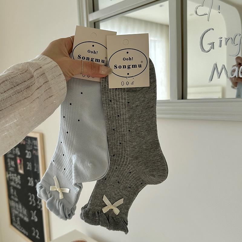 Songmu'Small Bow Bud Mouth Boneless Socks New Polka Dot Korean Medium Tube Socks Women'S