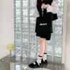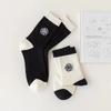 Thin Trendy Camellia Rose Embroidery Sweet And Comfortable Black And White Vertical Strip Pure Cotton Mid-Leg Socks