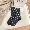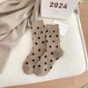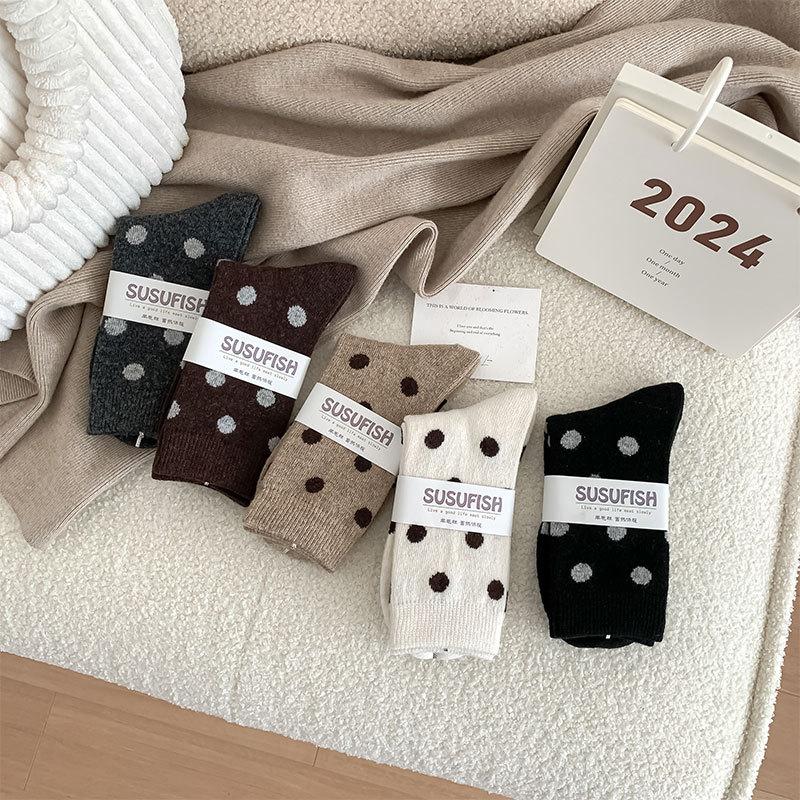 Socks Thickened Warm And Versatile Polka Dot Black Wool Maillard Coffee Color Mid-Leg Socks
