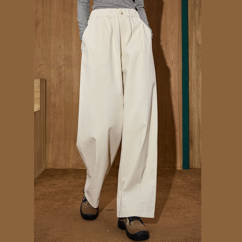 Coolhut Spring and Autumn New Pure Cotton Off-White Age-Reducing Casual Pants Slimming Versatile Loose Women's Cocoon-Shaped Pants Long Pants