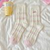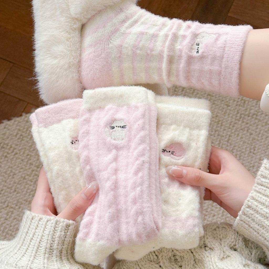 Season Pink Plush Socks Love Embroidery Cat Australian Plush Socks Plush Thickened Warm Sleep Socks