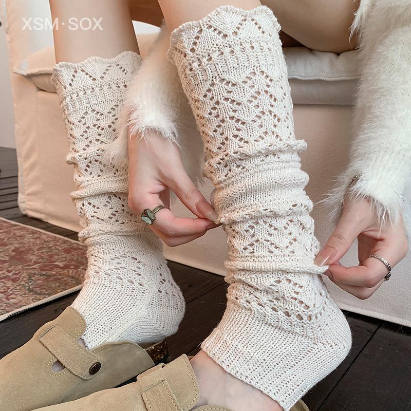 Boots Still Cotton Socks Cover Relief Hollow Warm Knitting Retro Gray Heavy Industry Long Tube Stack Calf Leg Cover