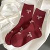 Socks Pure Cotton Medium Tube Socks Spring And Autumn Versatile Bow Love Ankola Red Cotton Stacking Socks Women