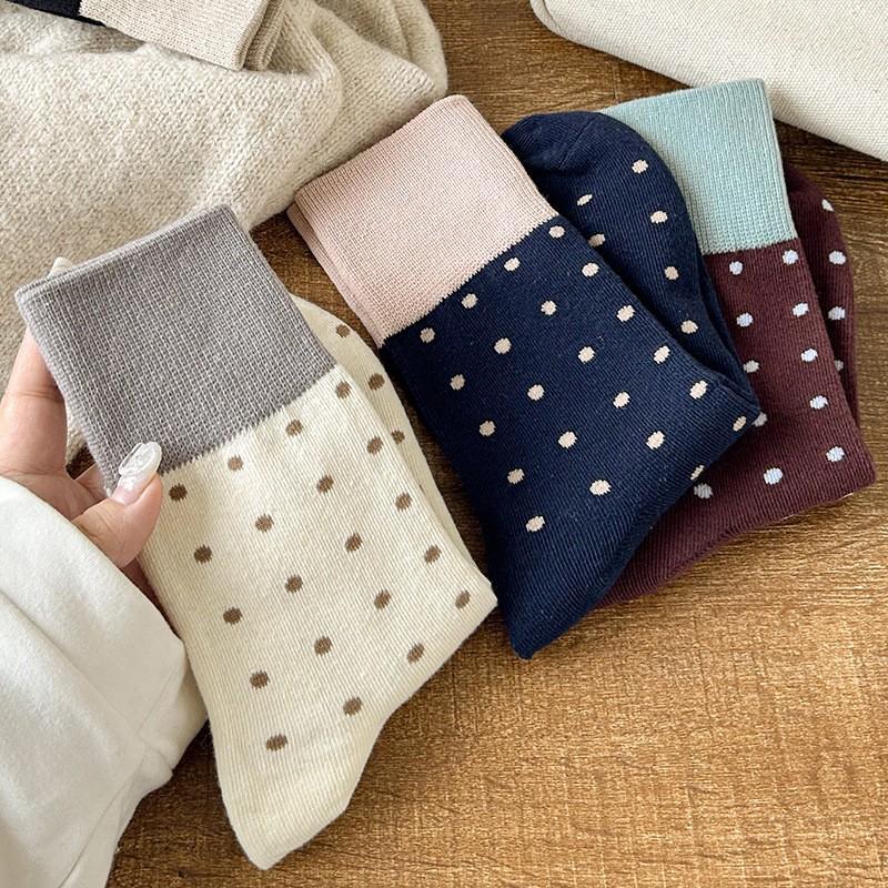 Socks Pure Cotton Stacking Socks Season Retro Color Matching Polka Dot Cotton Boneless Sweat-Absorbing Deodorant Medium Tube Socks