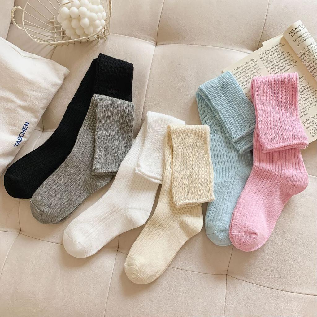 Stacked Socks, Solid Color, Thick Line Calf Socks, Summer Thin Ice Socks, Mary Jane Mid-Leg Socks, White Cotton