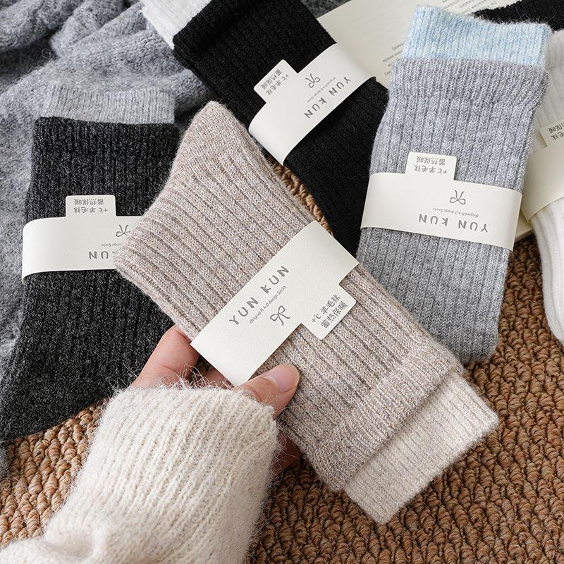 Wool Socks Children'S Stacking Socks Season Warm Color Matching Double-Layer Mouth Piled And Thickened Winter Retro Medium Tube Socks Women