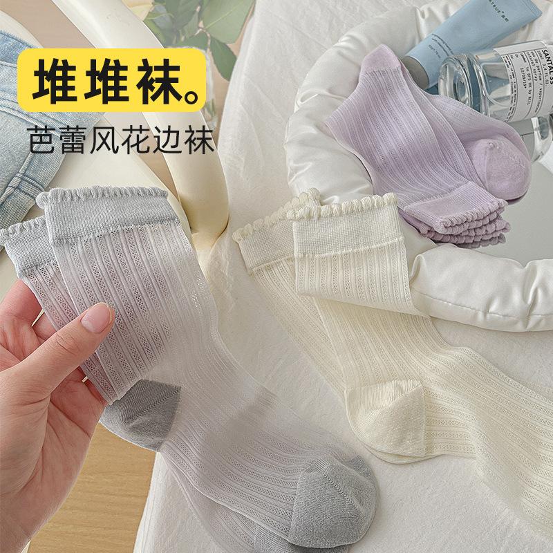 Socks Summer Thin Wood Ear Edge Lace Hollow Mesh Breathable Stacking Socks College Style Versatile Medium Tube Socks