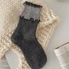 Socks Gray Boneless Wool Thickened Bow Warm Pile Socks Korean Socks Medium Tube Socks