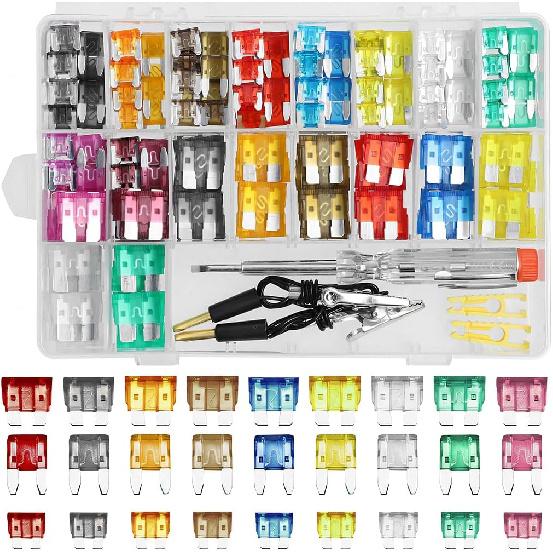 【Wide Application】: This car fuses assortment kit has a wide range of applications. It contains a variety of sizes and models of blade fuses that can be used in most vehicles including cars, trucks, off-road vehicles, ATVs, UTVs, RVs, motorcycles and more. Moreover, it features a variety of sizes that can be adapted to the protection needs of different circuits.