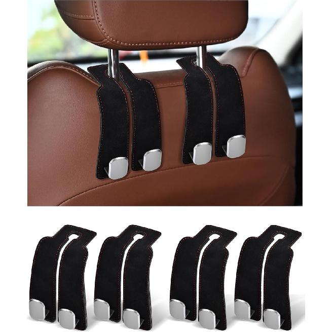 Headrest Hooks For Car, 4 Pack Car Seat Back Organizer Storage Hook, Double Hook Car Seat Hooks For Hanger Purses And Bags, Leather Purse Holder For