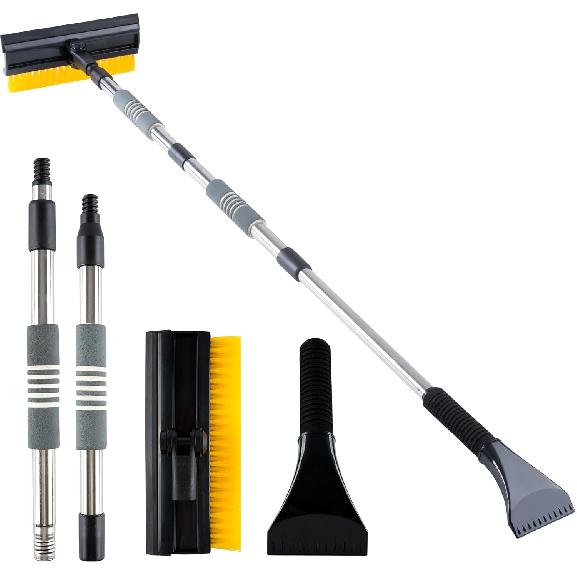 53'' Extendable Retractable Snow Brush & Ice Scraper For Cars/SUVs/Trucks - 360° Rotating Detachable Head, 10" Scratch-Free Squeegee, Ergonomic Foam