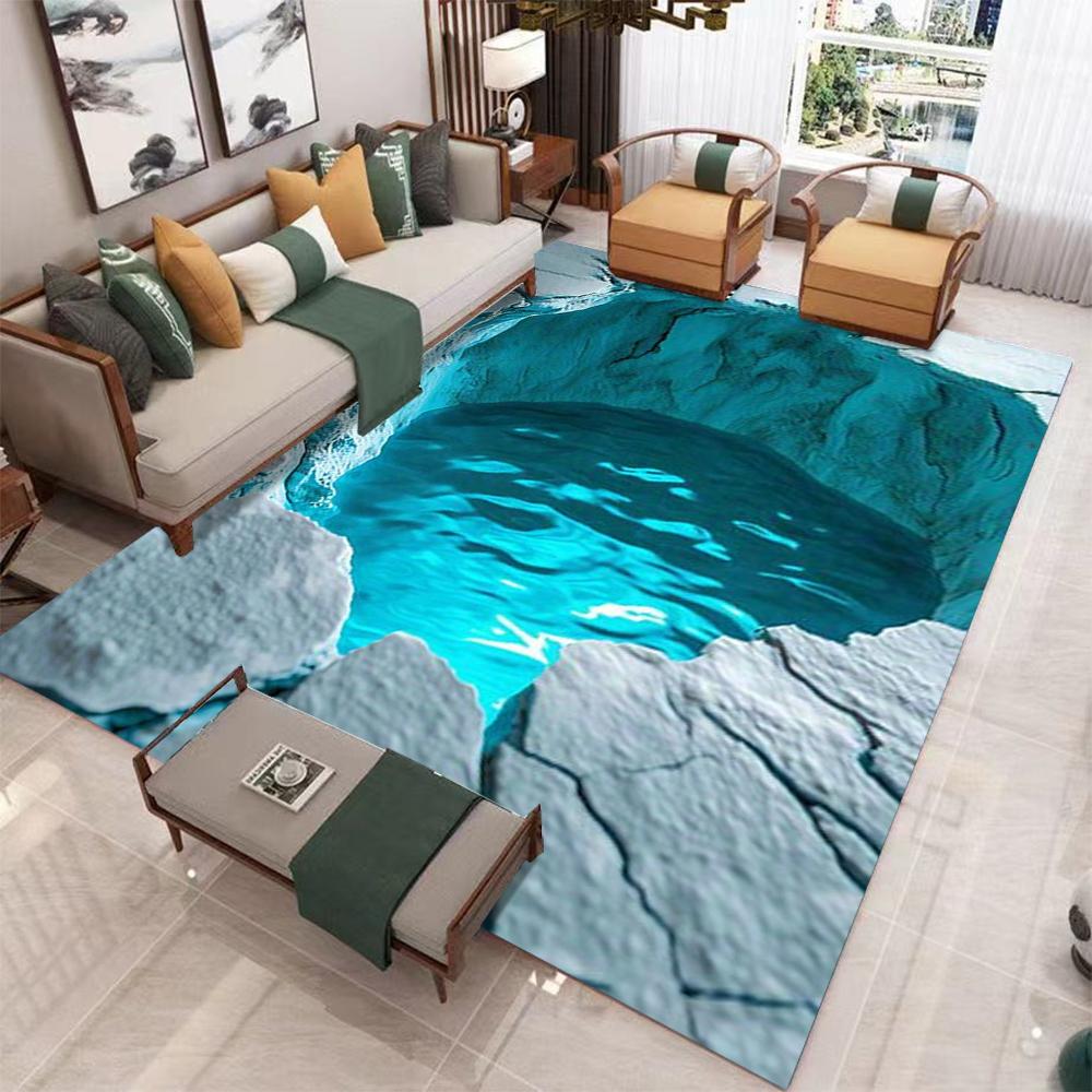 Glacier Ice Cave Carpet Endless Abyss Carpet Living Room Bedroom Full Carpet Visual Illusion Carpet Creative Decoration Rug
