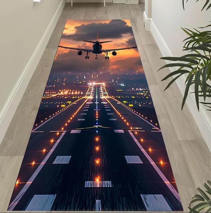 Airplane Runway Runner Rug Aerial View Non-Slip Cotton Base Home Decoration Carpets