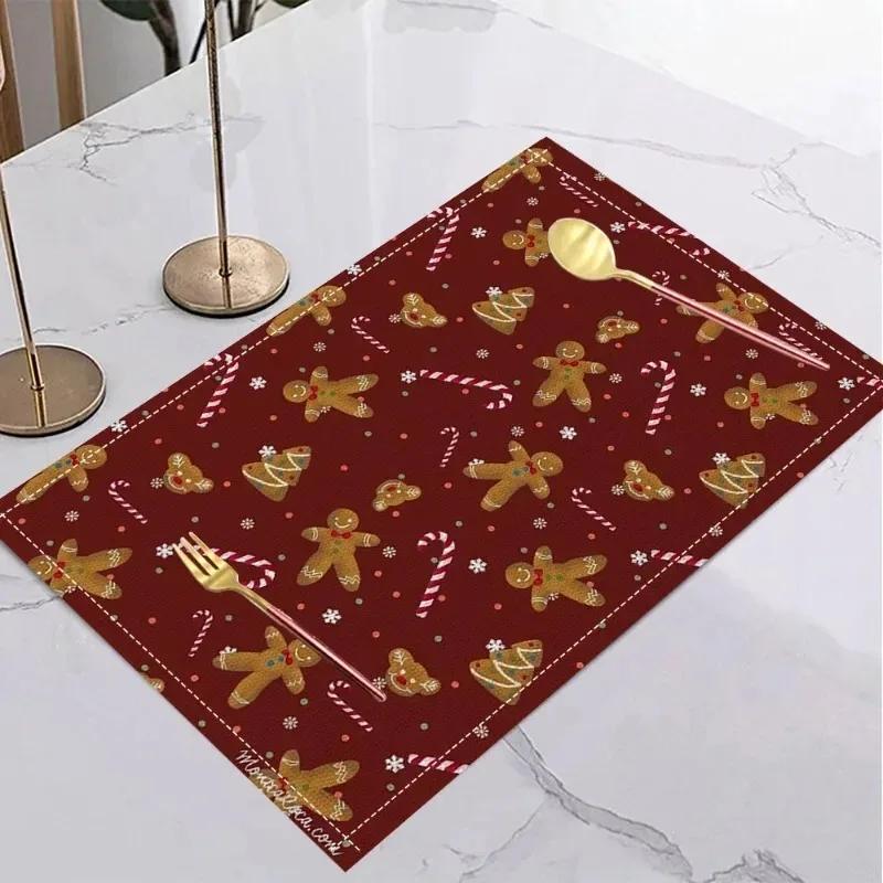 4/6/8pcs Christmas Gingerbread Man Placemats Holiday Table Home Kitchens Christmas Halloween Thanksgiving and New Year Decor