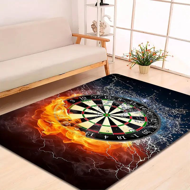 Dart Board Area Rugs Fire Water Design Born To Play Champion Theme Game Room Carpets for Man Cave Decor