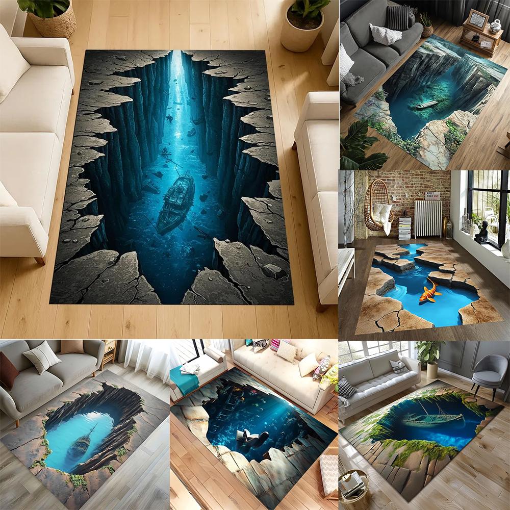 Forgotten Ship Carpet Under 3D Earth Cracks Ancient and Broken Ship Carpet Anti Slip Floor Mat Home Decoration