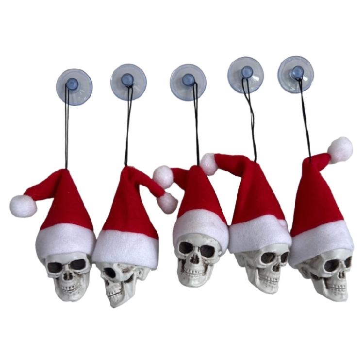 5Pcs Plastic Skeleton Head Decoration With Santa Hat For Holiday Parties Christmas Tree Halloween Hanging Ornament