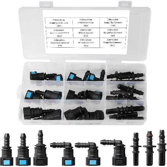 Fuel Line Quick Connect Kit 24PCS,Assorted 5/16 3/8 Fuel Line Fittings Nylon Straight Push-On Release Hose Connector