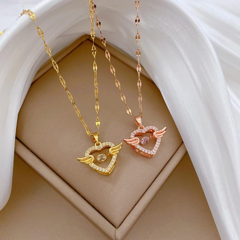 Smart Angel Heart Light Luxury Temperament Gorgeous Full Diamond Necklace Female Versatile Clavicle Chain Titanium Steel Chain