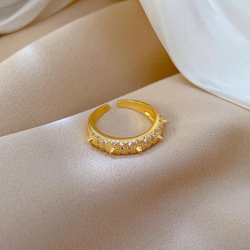 Real Gold Electroplated Opening With Thorns, Women'S Fashion Slightly Inlaid Light Luxury Ring, Index Finger Ring, The Same Cold Wind