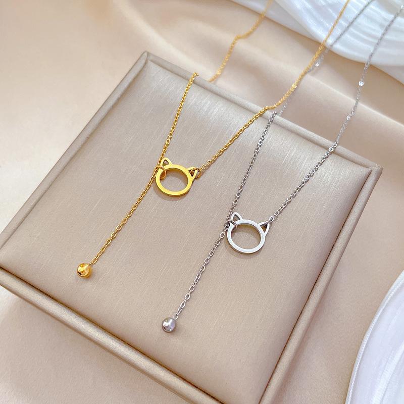 Titanium Steel Cat Tassel Minimalist Wind Stove Real Gold Necklace Female Collarbone Chain Accessories