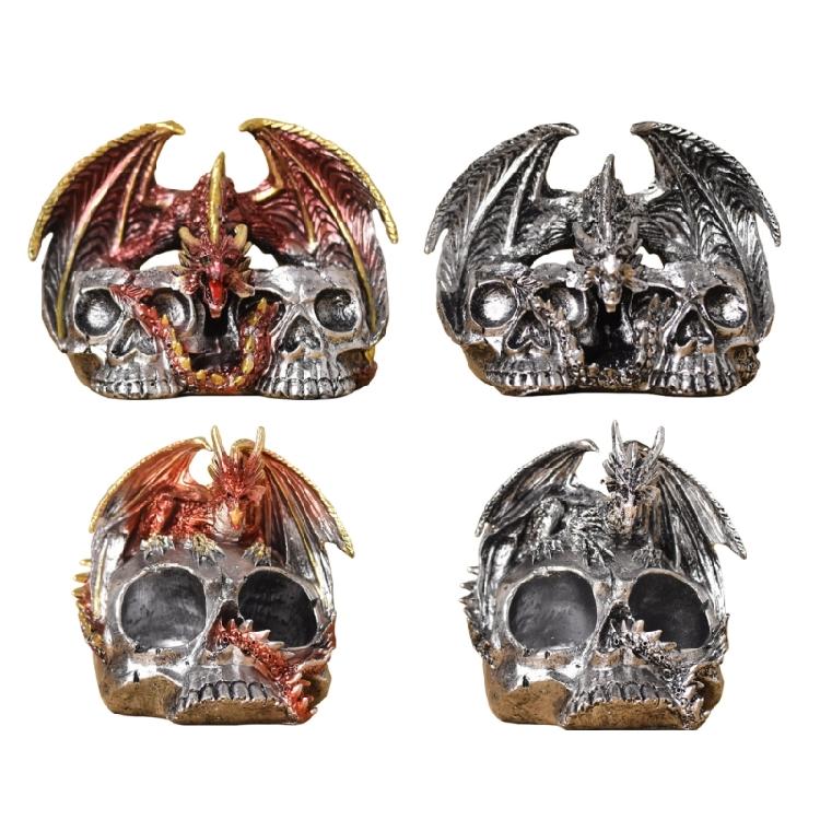 Dragon Skull Figurine for Halloween Resins Statue with Spices Shaker Display Stand Rack Kitchen Decoration for Collectors