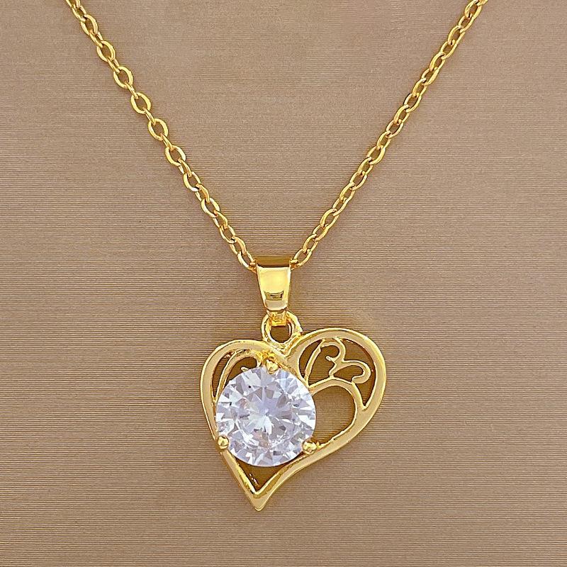 Light Luxury Temperament Real Gold Gorgeous Love Zircon Necklace Female Versatile Clavicle Chain Titanium Steel Chain