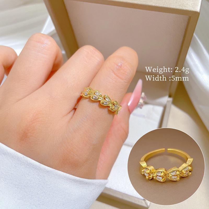 Real Gold Love Double Row Full Diamond Ring Opening Adjustable Simple Jewelry Japanese Ring Couple Ring