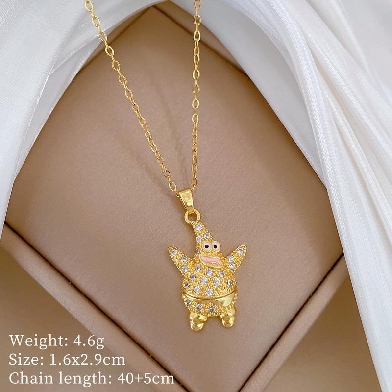 Fat Starfish Eyes Light Luxury Temperament Gorgeous Full Diamond Necklace Female Versatile Collarbone Chain Titanium Steel Chain