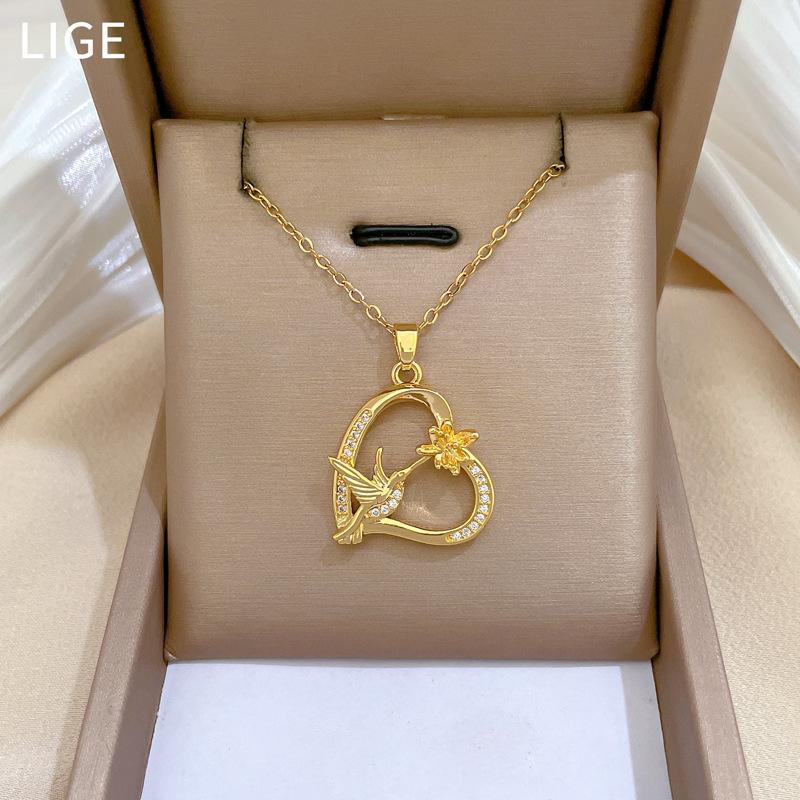 Swallow With Flowers Light Luxury Temperament Gorgeous Full Diamond Necklace Female Versatile Collarbone Chain Titanium Steel Chain