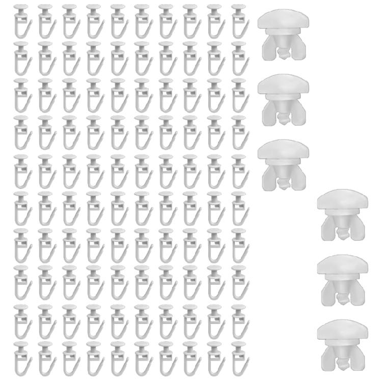 100Pcs Curtain Track Lockable Hook Curtain Gliders with 6Pcs Rails Stoppers for Window Curtain Rails Ceiling Gliders Set