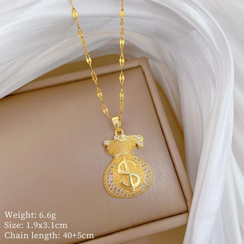 Full Diamond Money Bag Lucky Bag Light Luxury Temperament Gorgeous Full Diamond Necklace Female Versatile Collarbone Chain Titanium Steel Chain